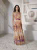 This asymmetrical one-shoulder dress blends sculptural draping with fluid movement, Crafted in a floral placement print with muted beige and purple hues. The bodice is accentuated by a thoughtfully placed waist cut-out, Flowing into a floor-length skirt, the design feels elegant yet effortless. A high slit completes the look, adding ease and confidence with every step.